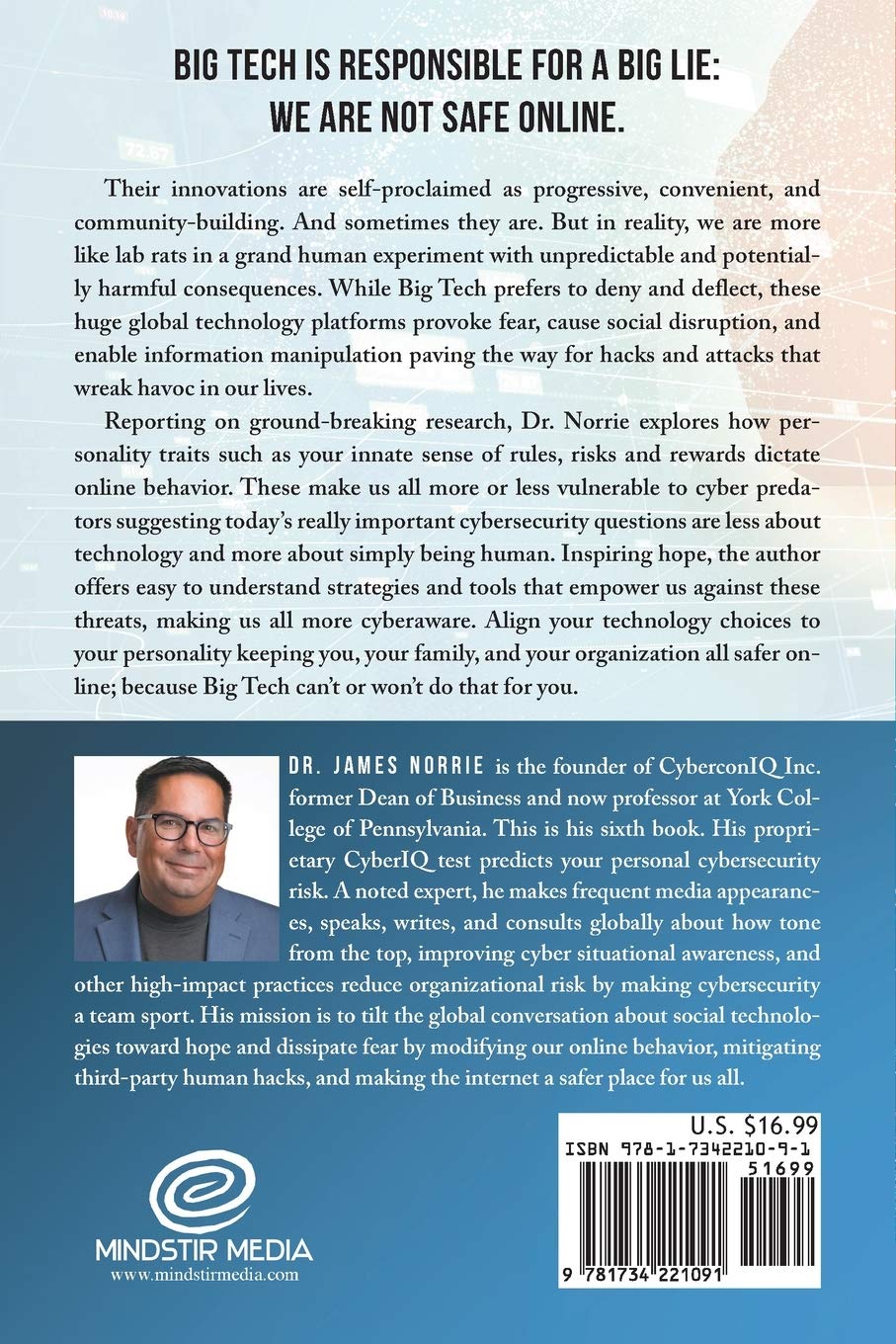 Reporting on ground-breaking research, Dr. Norrie explores how personality traits such as your innate sense of rules, risks and rewards dictate online behavior. These make us all more or less vulnerable to cyber predators suggesting today’s really important cybersecurity questions are less about technology and more about simply being human. Inspiring hope, the author offers easy to understand strategies and tools that empower us against these threats, making us all more cyberaware. Align your technology choices to your personality keeping you, your family, and your organization all safer online; because Big Tech can’t or won’t do that for you.